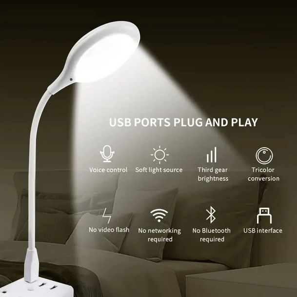 چراغ هوشمند USB فرمان صوتی به وسیله فرمان صوتی بدون نیاز به اپلکیشن بلوتوث .وایفای و... میتوانید آن را با دستور صوتی روشن و خاموش /عوض کردن رنگ/کم نور و پر نور کردن چراغ را از فاصله 2 متری با نویز محیطی زیر 60 دسی بل به وسیله صوت کنترل کنید. منبع تغذیه آن USB، که میتوانید از آن در رایانه ها، بسته های برق، شارژرهای دیواری، شارژرهای خودرو و ... آستفاده کنید. ،وزن سبک، و چرخش 360 درجه و نور مناسب برای کار, مطالعه و خواب از دیگر مزایای این چراغ هوشمند است چراغ کنترل صوتی: با ساخت به ترتیب فرمان صوتی، فقط دستور را بگویید، چراغ دستور شما را برای روشن و خاموش کردن چراغ دنبال می کند، بدون نیاز به نصب APP، فقط چراغ خود را وصل کنید و کنترل کنید. x طراحی بازوی گردن غاز انعطاف پذیر: با بازوی گردن غاز انعطاف پذیر، می توانید نور را به موقعیت مورد علاقه خود تنظیم کنید. این نور شب برای اتاق خواب، آشپزخانه، حمام، اتاق نشیمن، اتاق کودک، راهرو، پله، مهد کودک و چادر کمپینگ مناسب است. x تغذیه با پورت USB A: می توانید آن را به هر منبع تغذیه USB مانند پاوربانک، لپ تاپ، رایانه شخصی، آداپتور یا هر دستگاه دیگری با خروجی USB وصل کنید. لطفاً توجه داشته باشید که این لامپ با USB-C سازگار نیست. پورت ها و لامپ باید به پورت USB نوع A وصل شوند. xرنگ و روشنایی قابل تنظیم: لامپ دارای حالت سه رنگ سفید، نارنجی، سفید+نارنجی است که با فرمان صوتی ;تغییر رنگ; قابل کنترل است. همچنین می توانید با صحبت کردن ;Dim the light; و ;Brighten the Light; روشنایی لامپ را به صورت صوتی کنترل کنید. x حمل آسان: بازوی گردن غاز قابل خم شدن است، بنابراین می توان آن را تا کرد و به راحتی در کیف یا جیب خود نگهداری کرد. به شما اجازه حمل و نقل در هنگام سفر در اطراف.