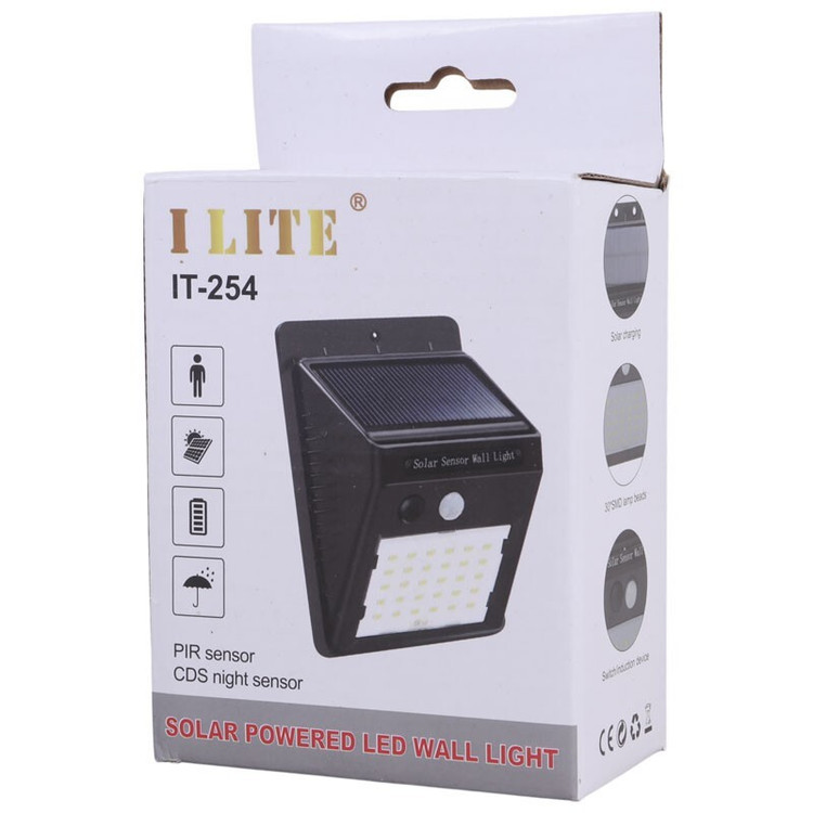 چراغ سولار سنسوردار با 30 عدد لامپ SMD و نوردهی مهتابی