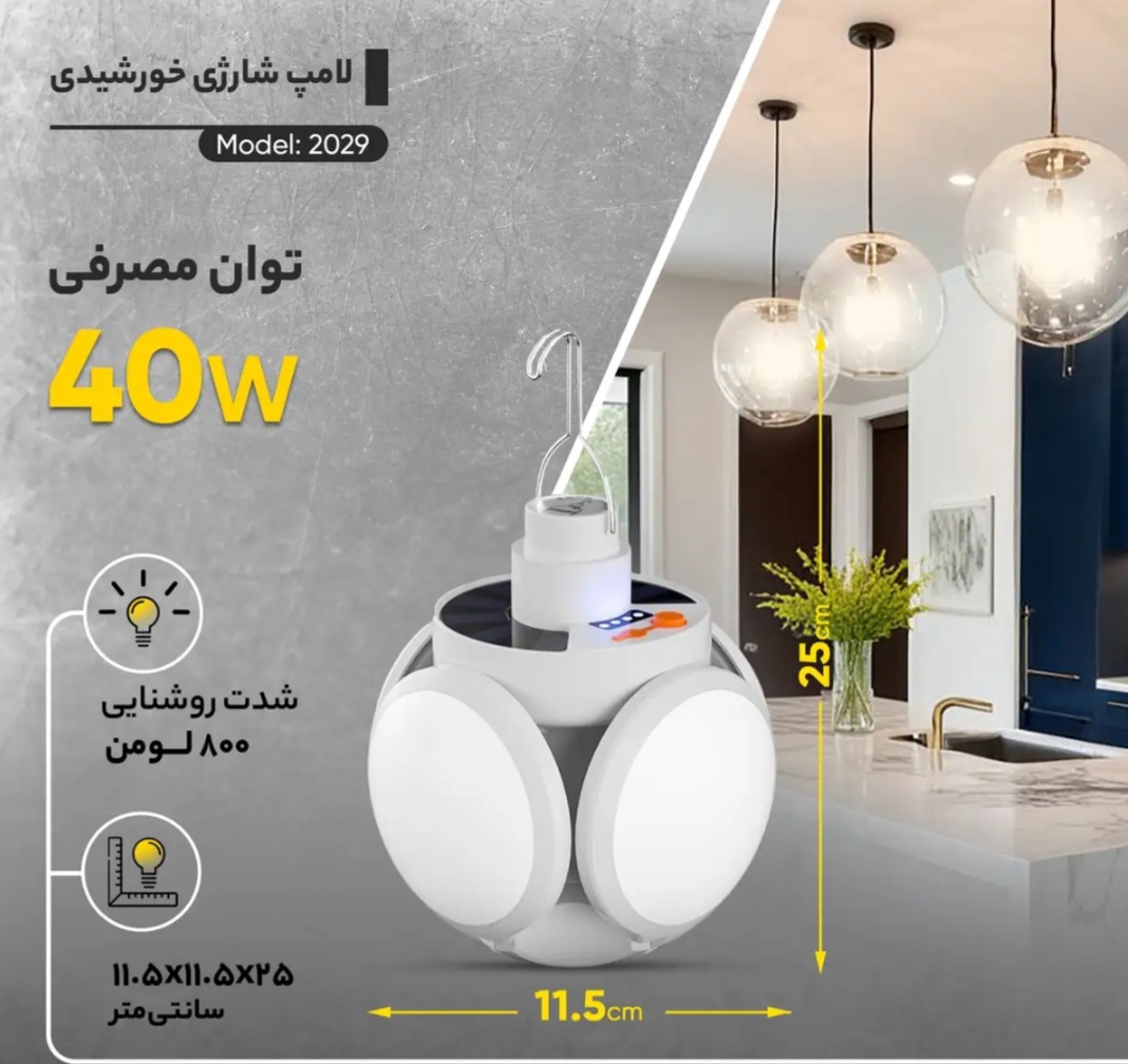 چراغ شارژی خورشیدی یکی از کاربردی ترین و عالی ترین لوازمی است که برای کوهنوردی و مسافرت پیشنهاد میشود. زمان شارژ شدن کامل این چراغ به وسیله پنل خورشیدی حدودا 6 الی 8 ساعت میباشد. همچنین با آداپتوری که در داخل جعبه این محصول است،میتوان از برق شهری هم استفاده کرد و سریع تر چراغ را شارژ نمود. این چراغ دارای چهار پره بازشونده است که 90 درجه میچرخد و برای نصب بر روی سقف عالی است. این چراغ ضد آب است و در برابر شک الکتریکی نیز مقاومت بالایی دارد.