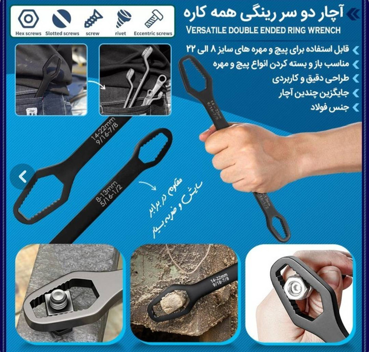 صرفهجویی در هزینه و فضا: به جای خرید چندین آچار تکسایز، یک ابزار همهکاره داشته باشید.
