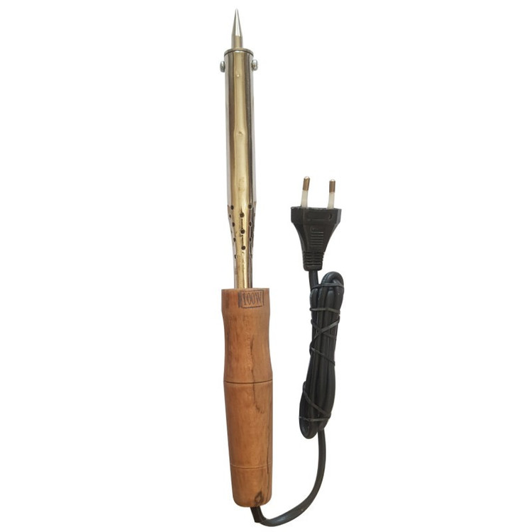(هویه ۱۰۰ وات دسته چوبی)هویه ابزاری برای لحیم کاری بردهای الکتریکی و الکترونیکی است. یکی از راههایی که برای اتصال در مدارات الکتریکی و الکترونیکی استفاده میشود، لحیمکاری است. این کار با استفاده از دستگاه هویه و به کمک قلع یا همان سیم لحیم، انجام میشود. هویه دسته چوبی دارای بدنه چوبی، طول عمر زیاد و نوک قابل تعویض می باشد. نوک هویهی بلند و دسته چوبی آن باعث جلوگیری از انتقال حرارت به دست میشود و میتوان مدت طولانی از آن استفاده کرد.